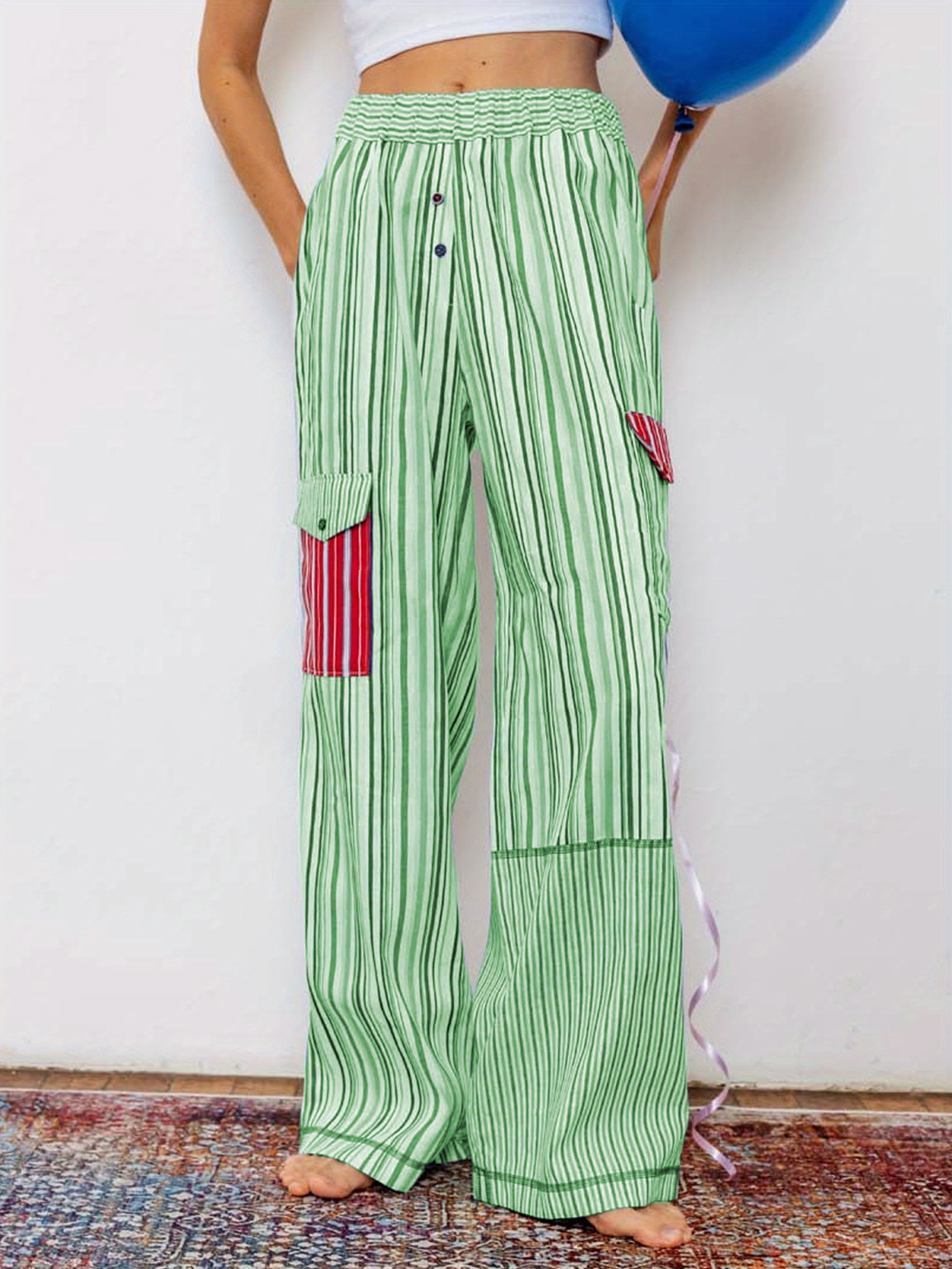 1pc Women'S Casual Striped Wide Leg Pants, Elastic Waist Loose Trousers with Pockets, Spring/Autumn Streetwear for Adults
