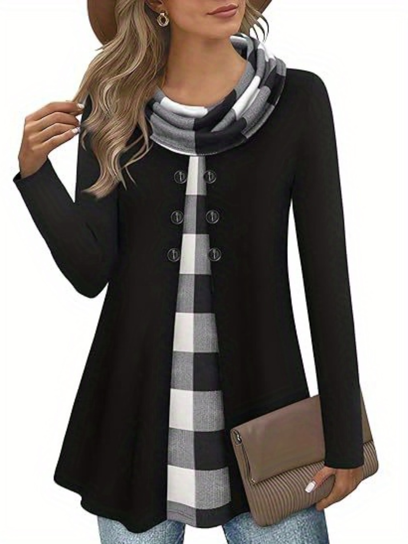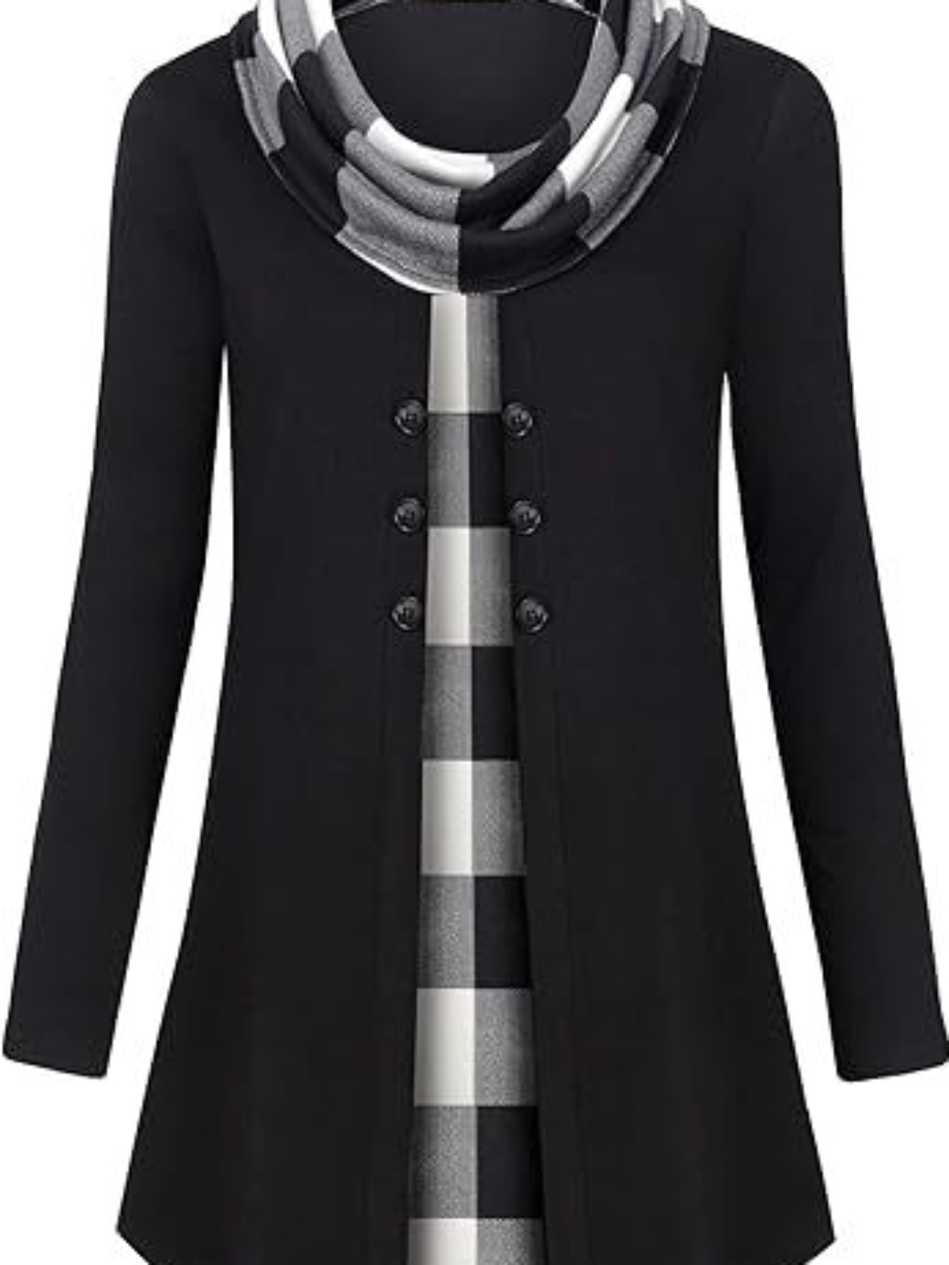 Chic Plus Size Turtleneck Coat for Women - Casual Button-Up, Long Sleeve, Machine Washable - Perfect for Fall & Winter