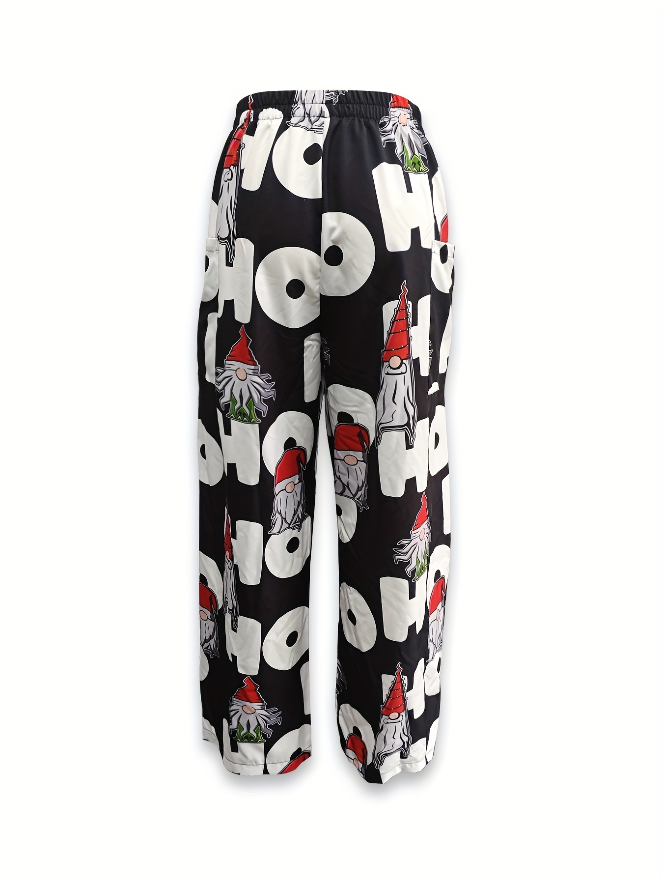 Whimsical Charm, Chic Christmas-Themed Wide-Leg Pants for Women - Cute Polyester, Machine Washable with Pockets, Perfect for Spring/Summer/Fall