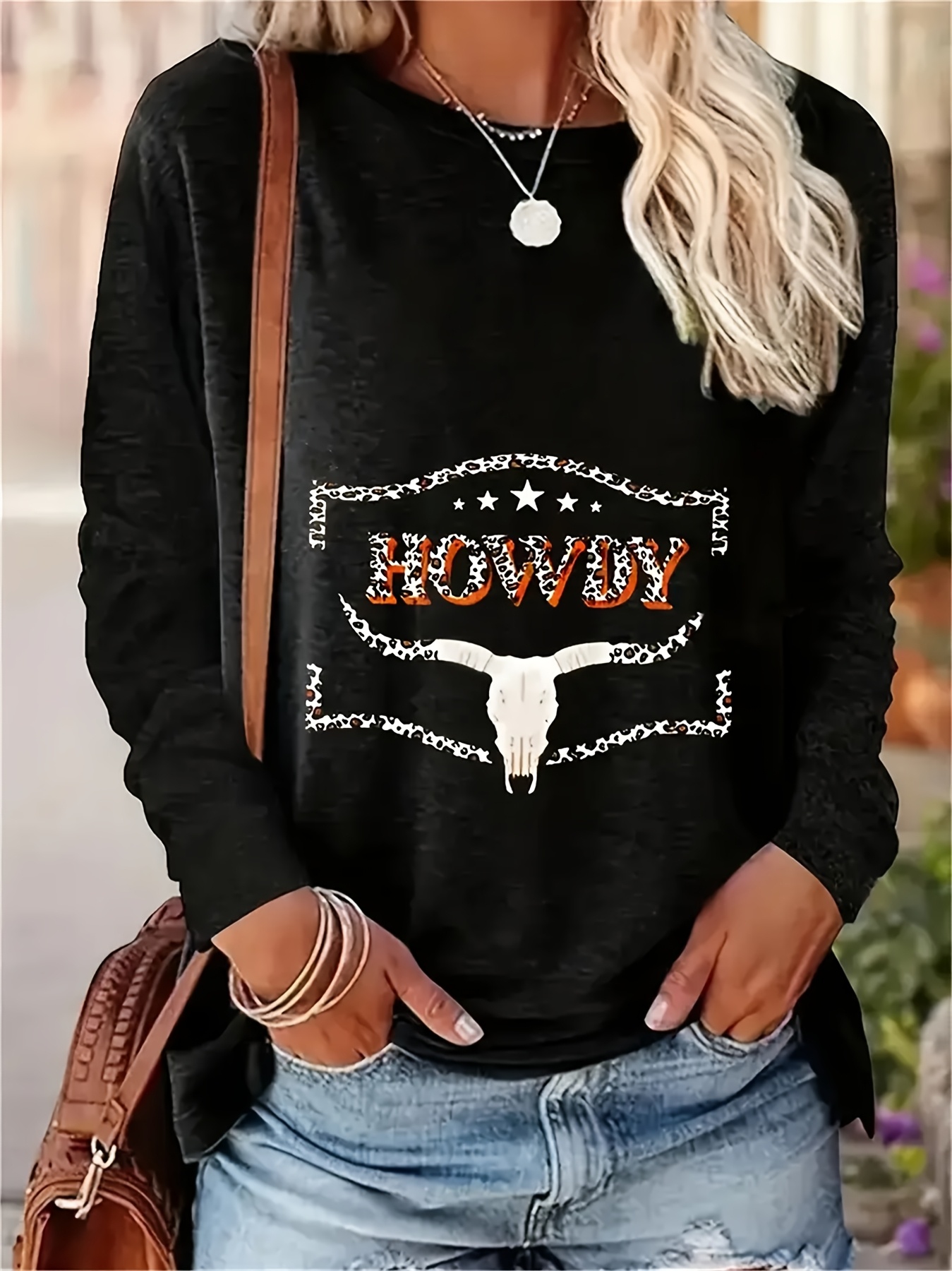 Women's Plus Size Casual Bull Head Print T-Shirt - Comfy Long Sleeve, Round Neck Top for Spring & Fall