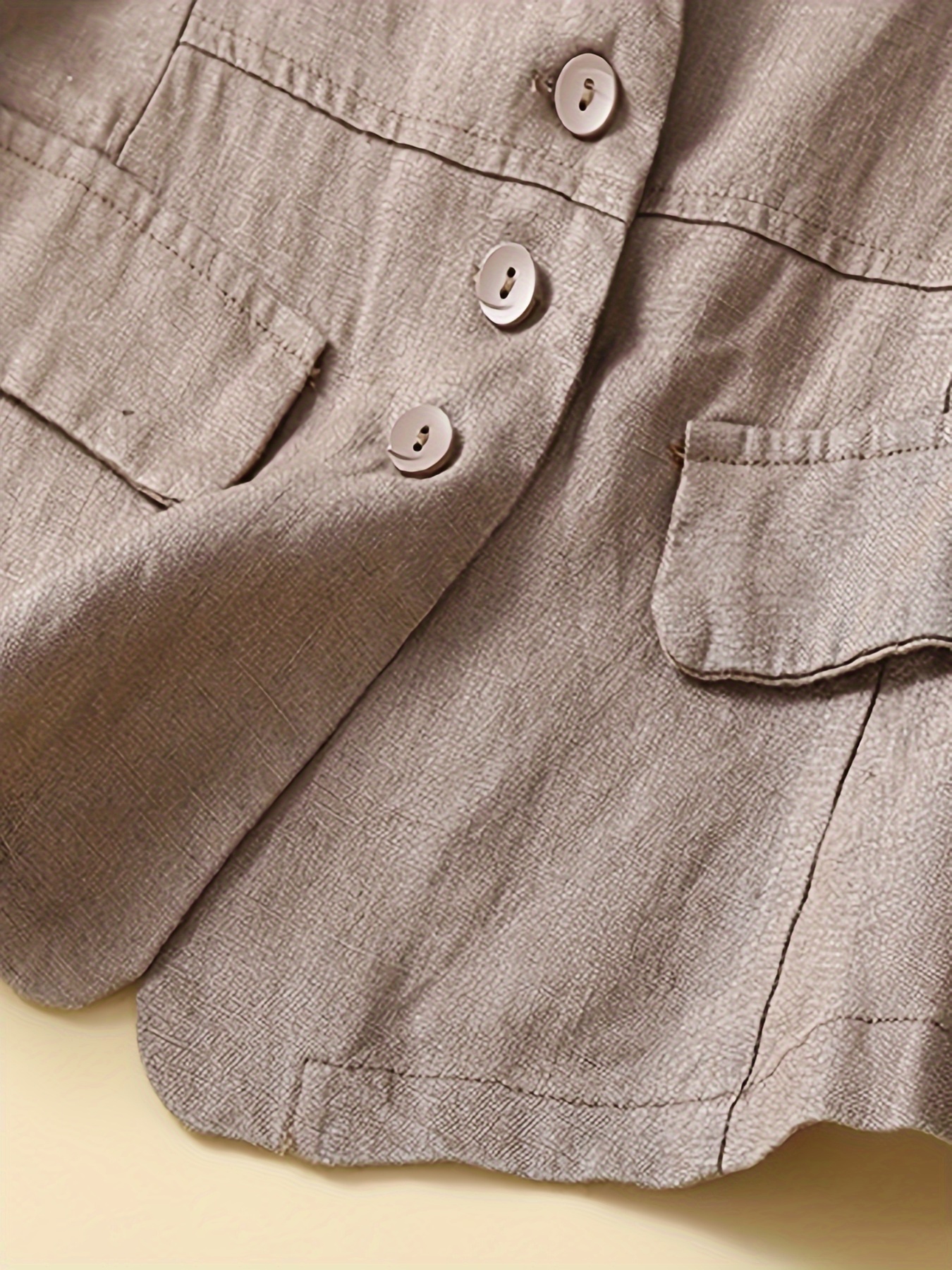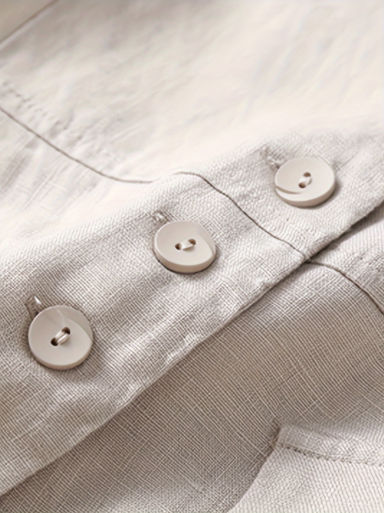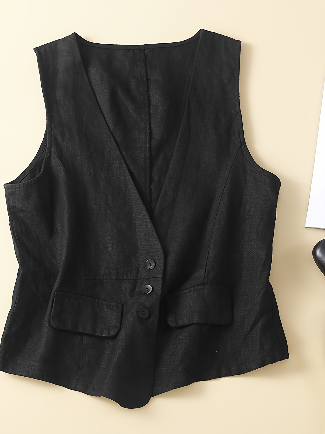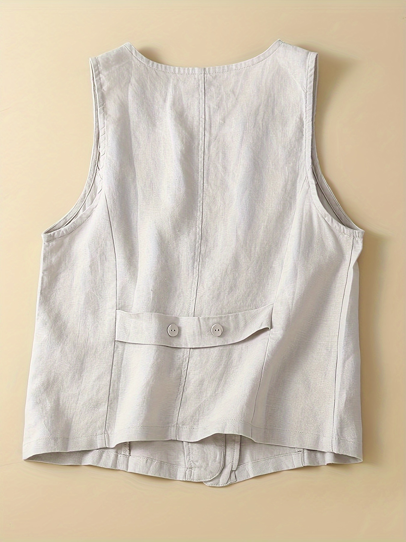 1pc Women'S Plus Size Casual Linen V-Neck Sleeveless Vest - Solid Color Knit Fabric Button-Down Leisure Tank Top