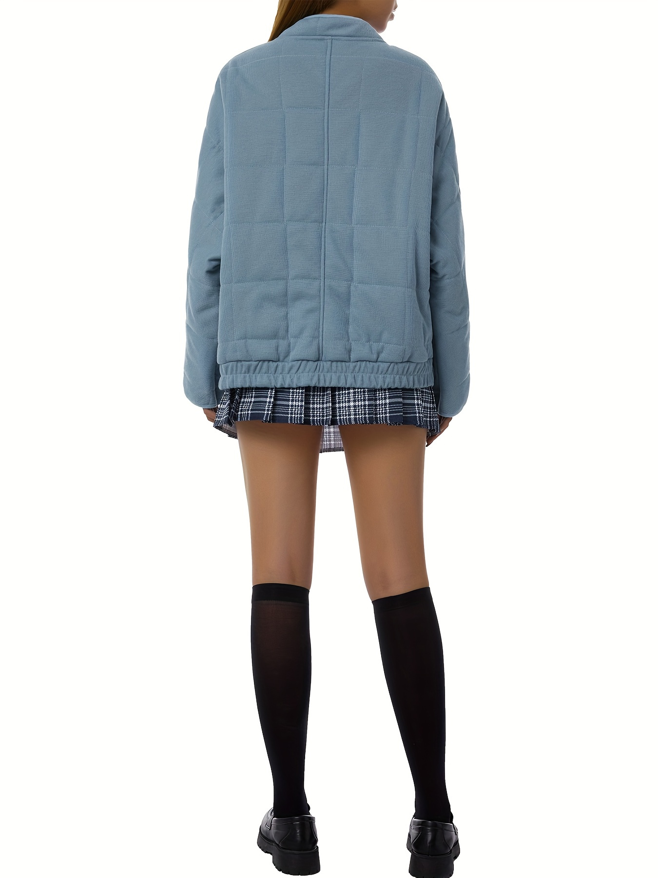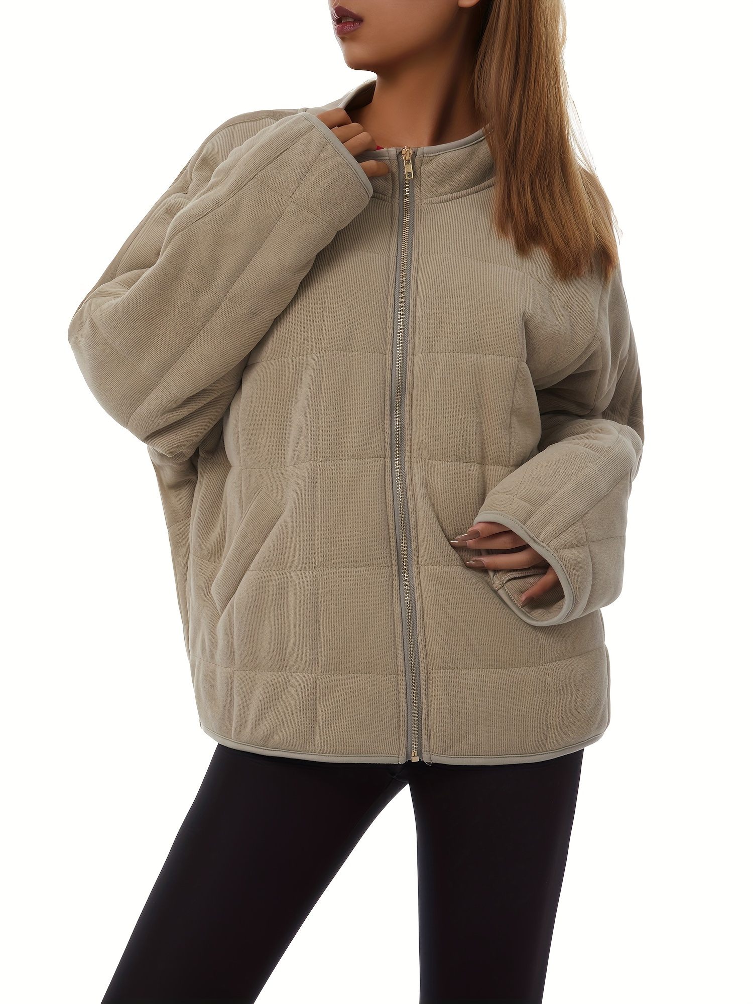 Chic Plus Size Quilted Jacket for Women - Casual Long Sleeve, Full Zip Padded Coat with Stand Collar, Machine Washable - Perfect for Fall/Winter