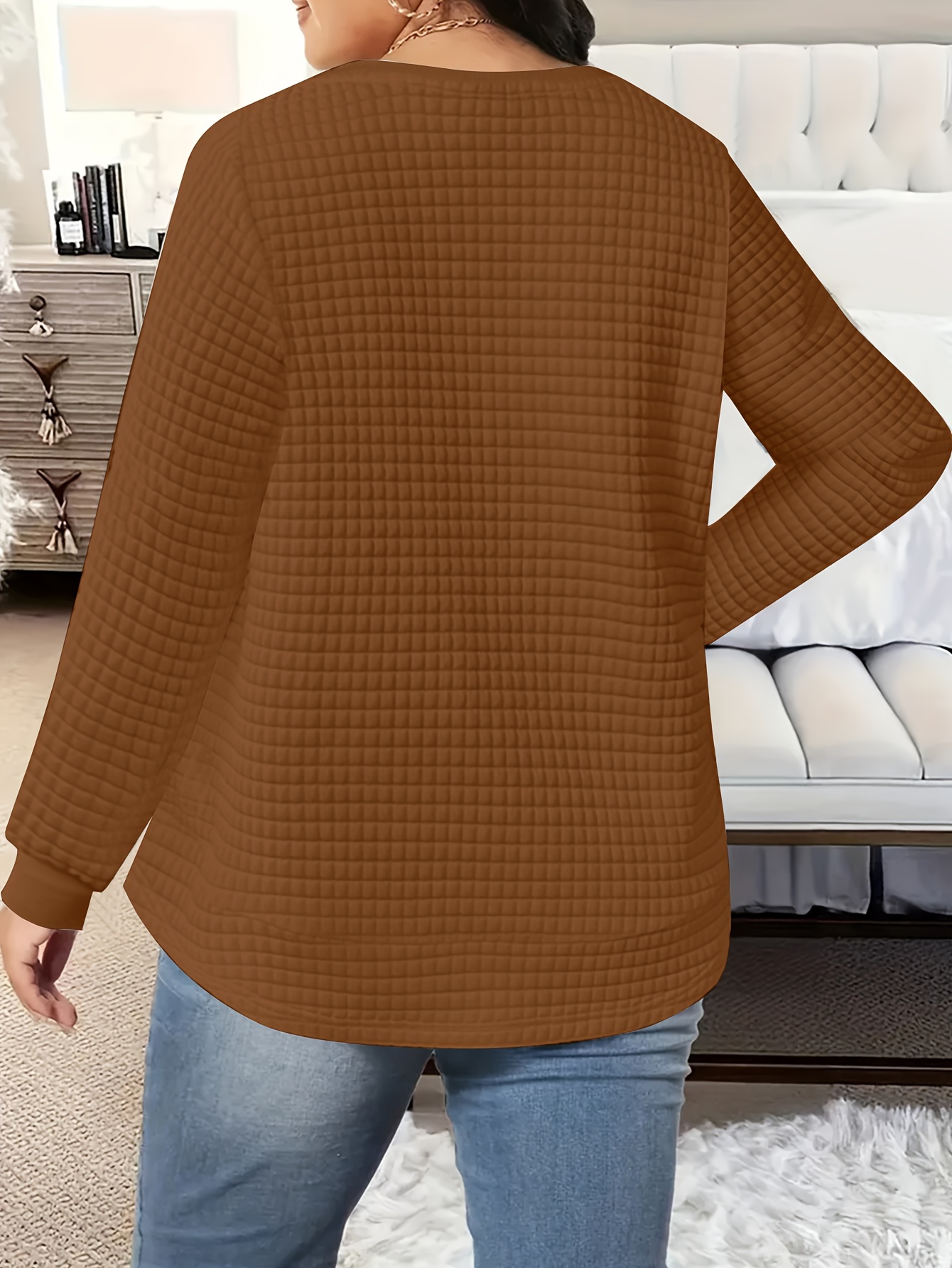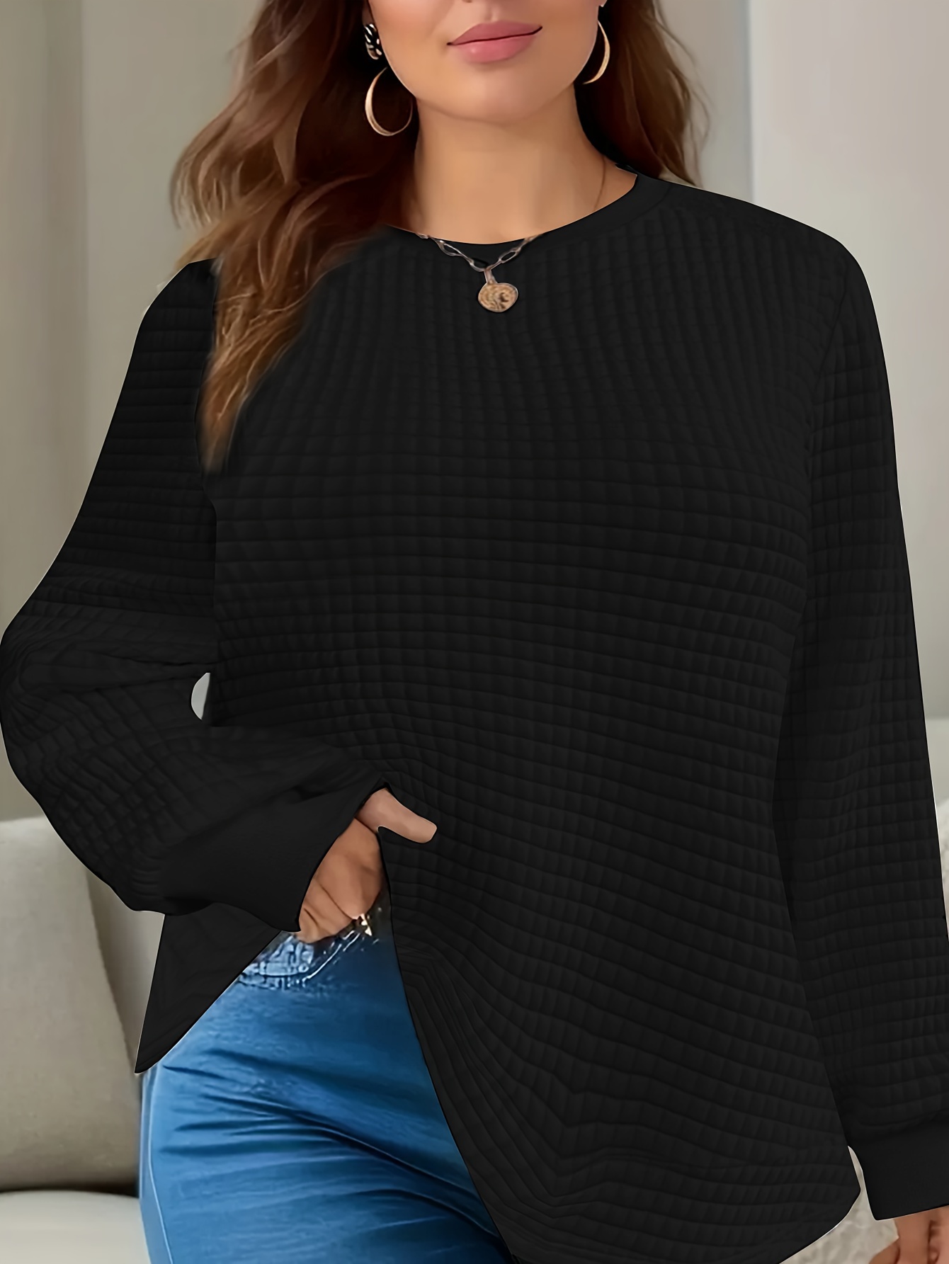 [Customer Favorite] Elegant Plus Size Solid Color Sweatshirt for Women - Crew Neck, Long Sleeve, Stretch Fabric, Machine Washable - Perfect for Fall/Winter