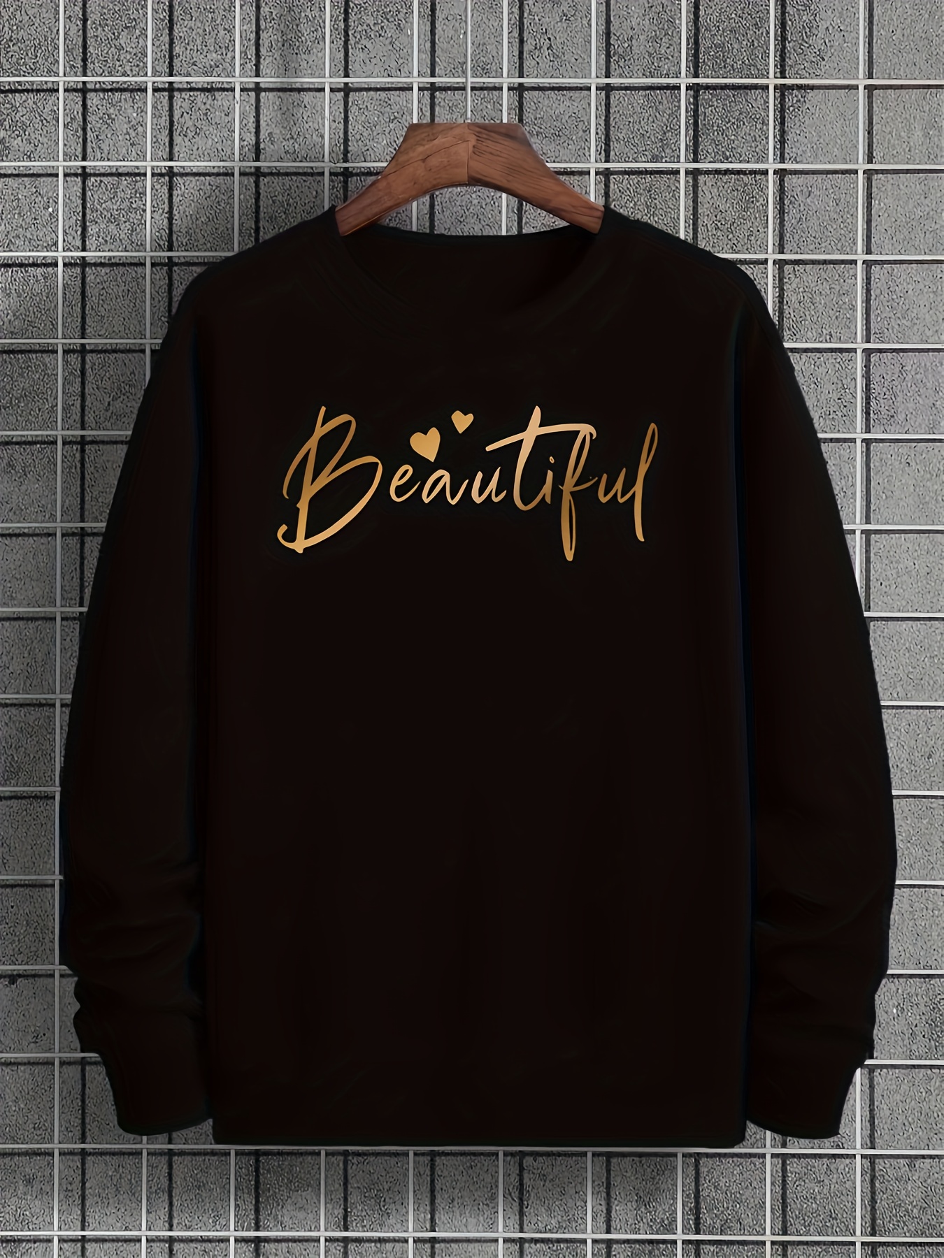Plus Size Beautiful Print Sweatshirt, Casual Long Sleeve Crew Neck Pullover Sweatshirt, Women's Plus Size Clothing