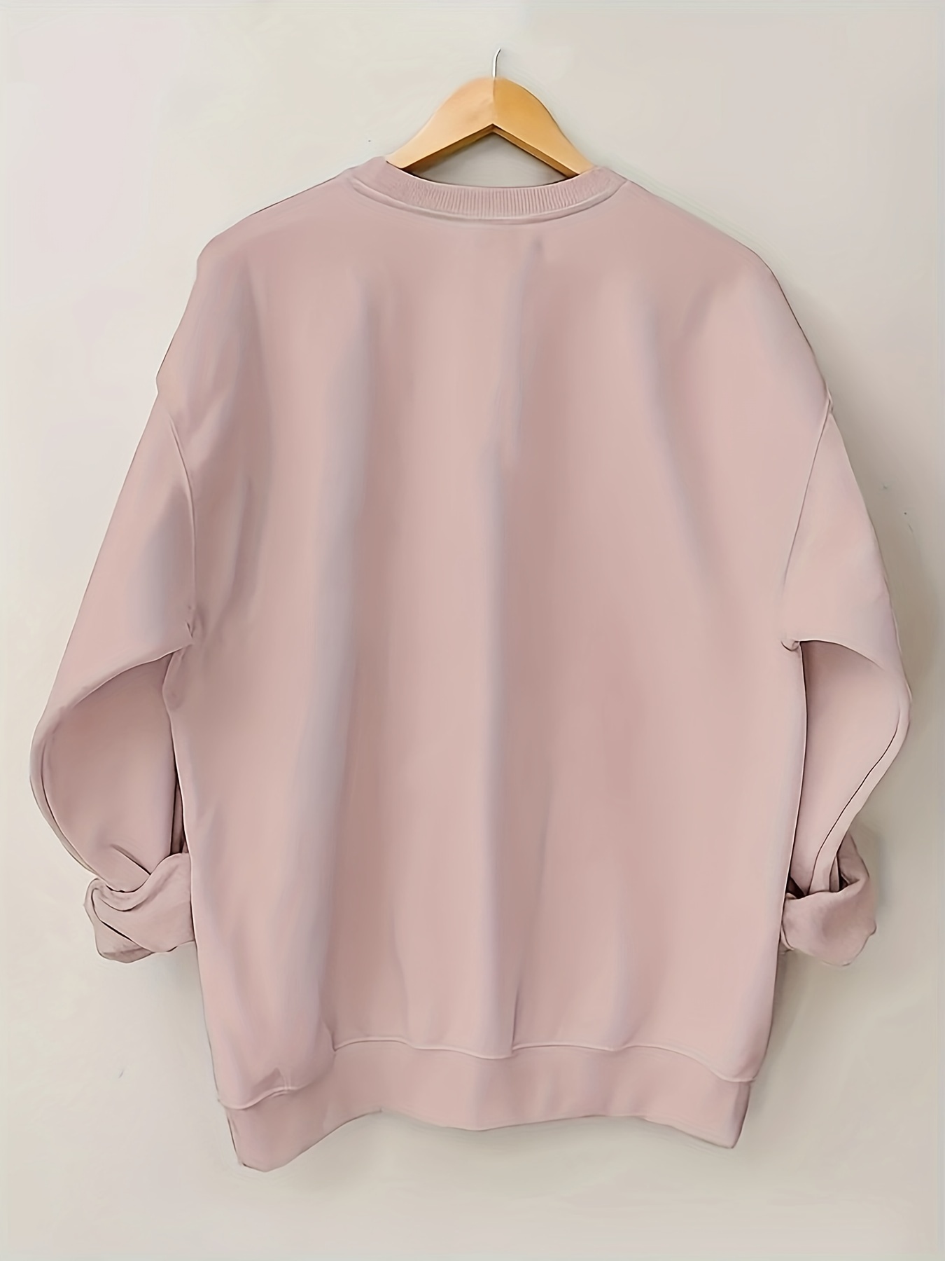 Plus Size USA Print Pullover Sweatshirt, Casual Long Sleeve Crew Neck Sweatshirt For Fall & Spring, Women's Plus Size Clothing