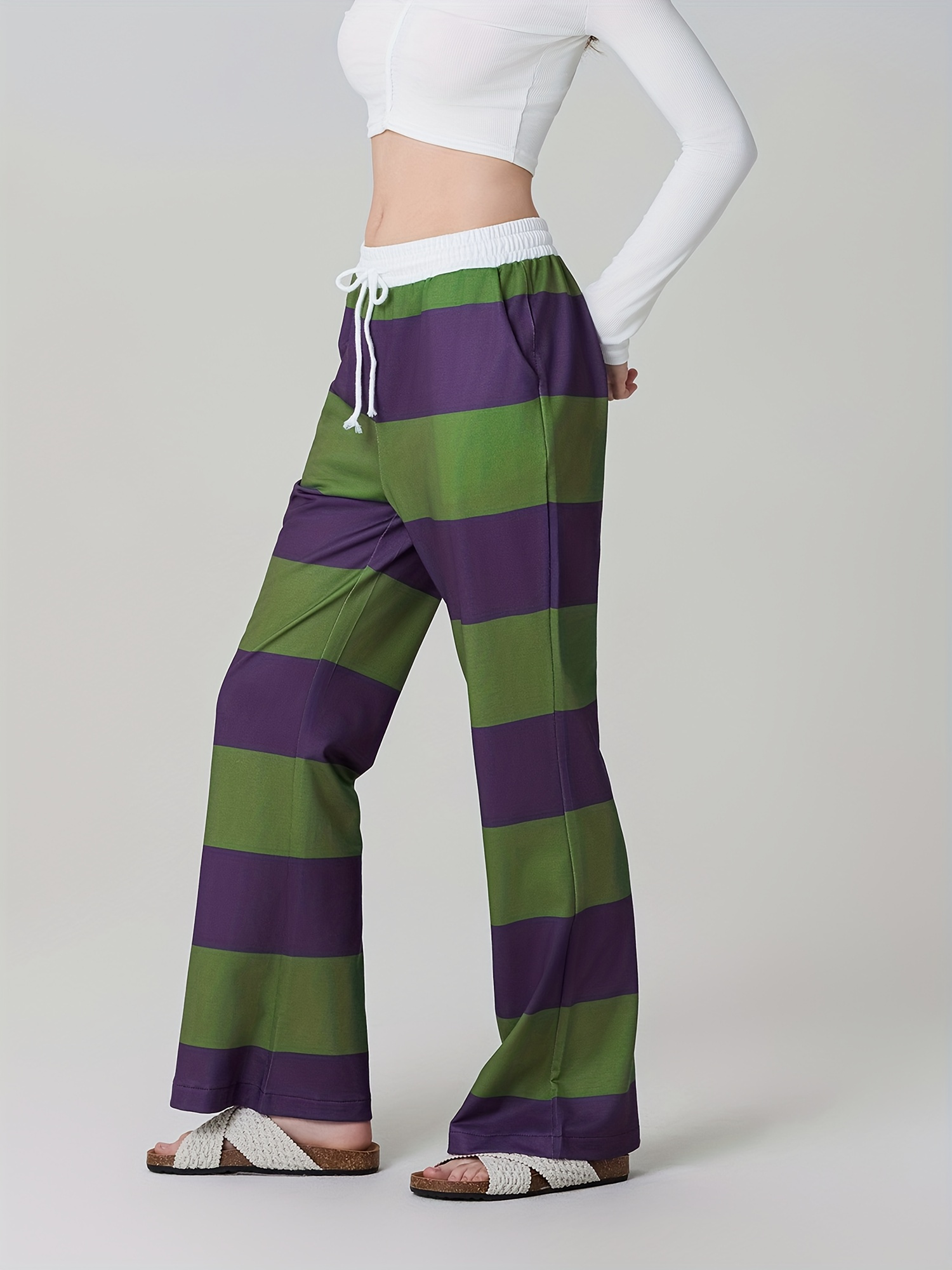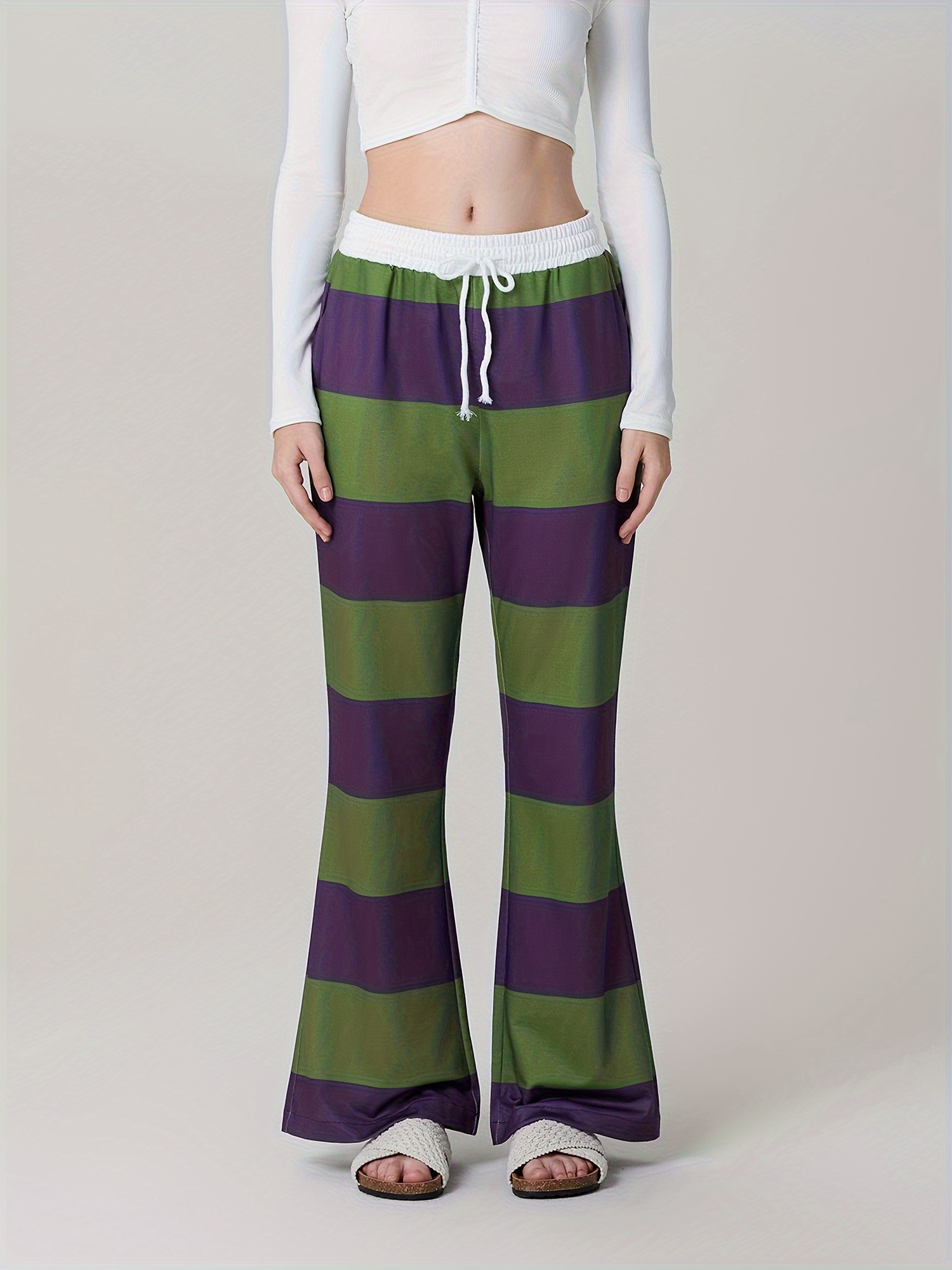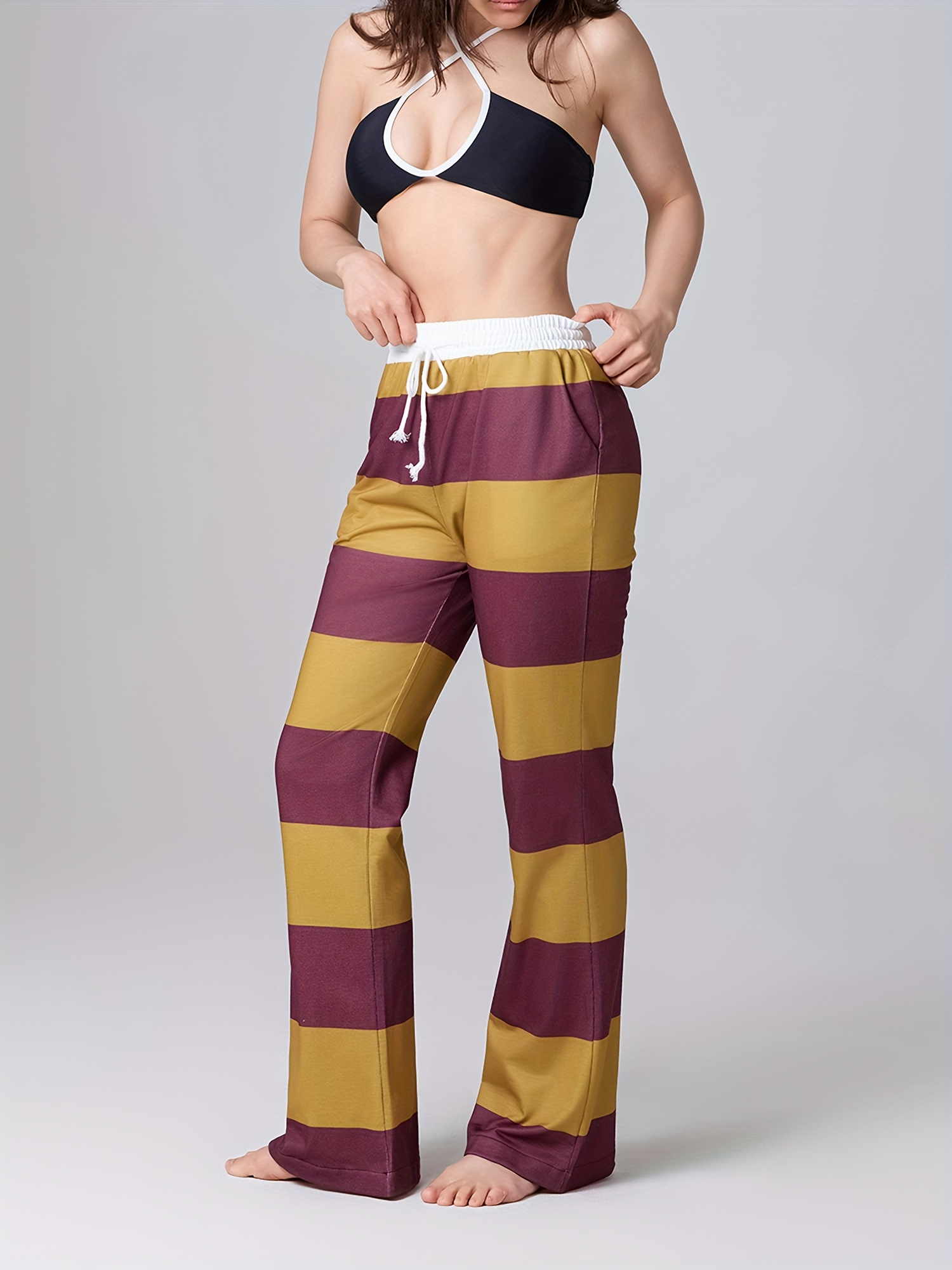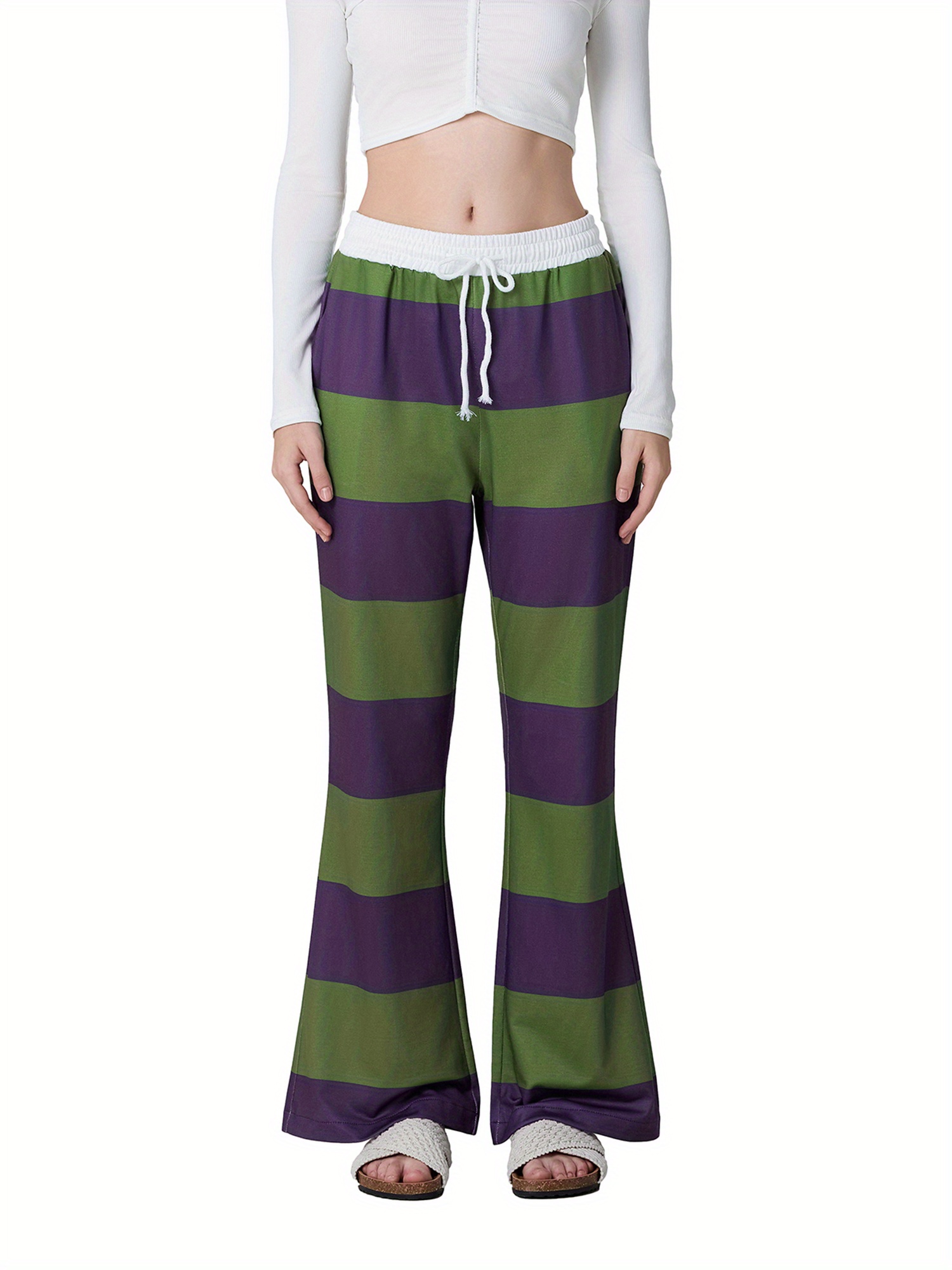 1pc Women'S High Waist Drawstring Pajama Pants - Sexy Floral Pattern Stirrup Long Trousers, Cozy Knit Fabric Lounge Bottoms for All Seasons, Adult - Silk Material