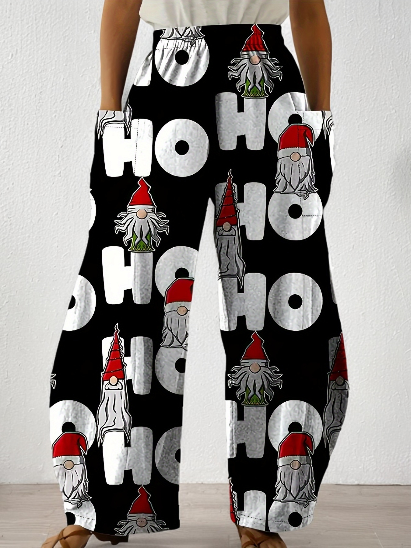 Whimsical Charm, Chic Christmas-Themed Wide-Leg Pants for Women - Cute Polyester, Machine Washable with Pockets, Perfect for Spring/Summer/Fall